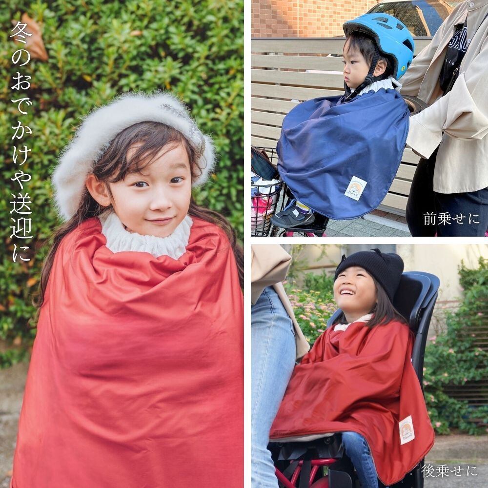 【即納】防寒ポンチョ 日本製 自転車用 キッズ 撥水 防風 洗える 冬用 ブランケット 収納ケース付 毛布 ケープ 寒さ対策 幼稚園 登園 通園 自転車送迎 子ども乗せ 自転車 | Blomma(ブロンマ)ベビー・キッズ・雑貨